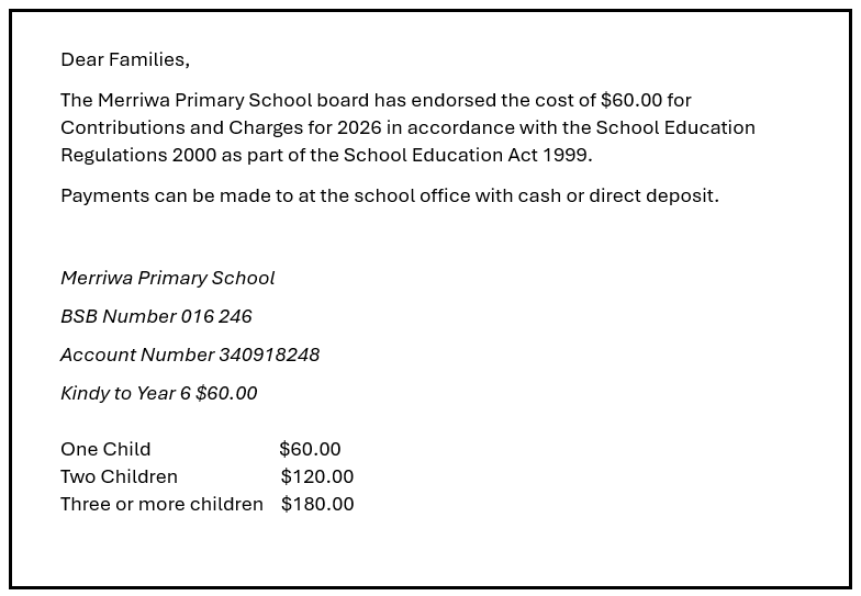Voluntary Contributions can be paid at the school office or direct deposit.